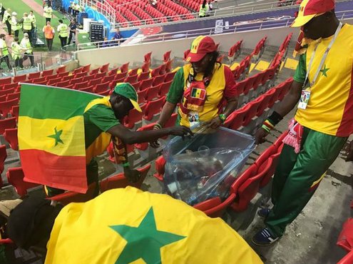 Setelah terus bernyanyi dan menari di tribune, sejumlah pendukung Senegal langsung bergerak memungut sampah setelah pertandingan berakhir. SLOT